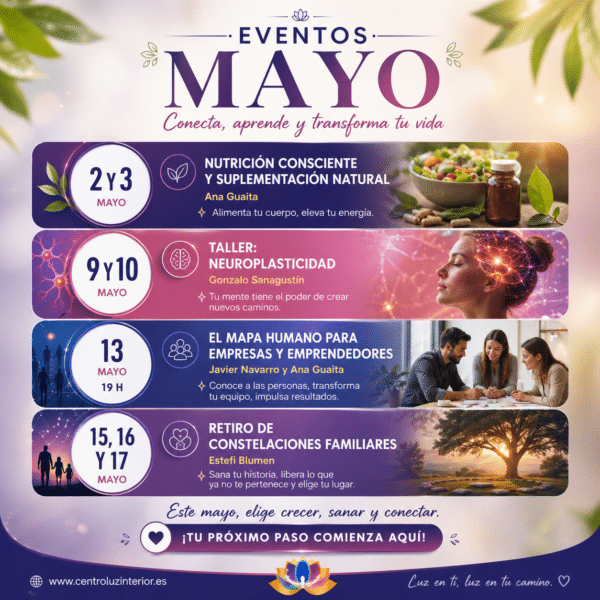 Maribel Montaner es experta en rebirthing y respiración consciente, especializada en acompañar procesos de sanación emocional y crecimiento personal. A través de sesiones individuales y grupales, ayuda a liberar bloqueos emocionales, reducir el estrés y tomar conciencia de patrones inconscientes mediante la respiración. Su enfoque integral combina autoconocimiento, conciencia corporal y bienestar emocional.